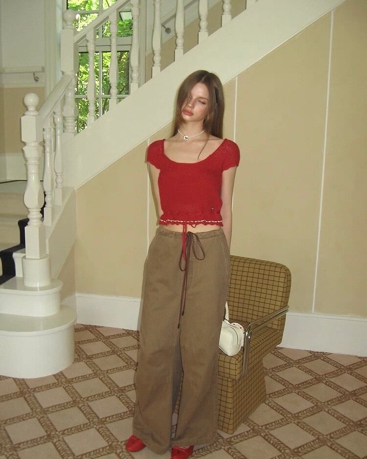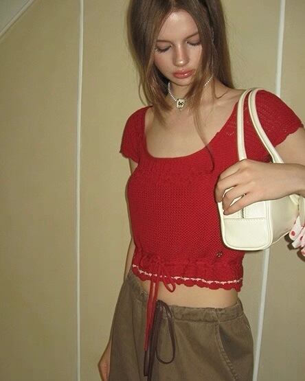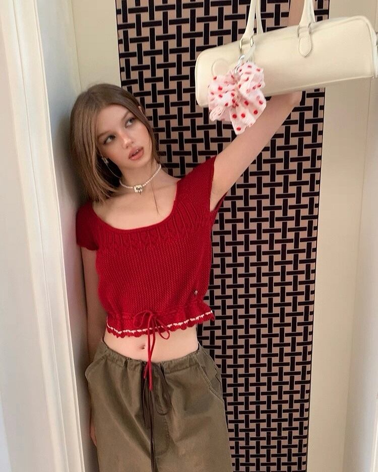 【Uena】waist ribbon mini knit